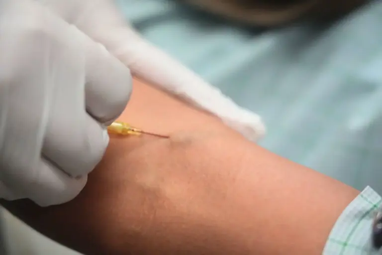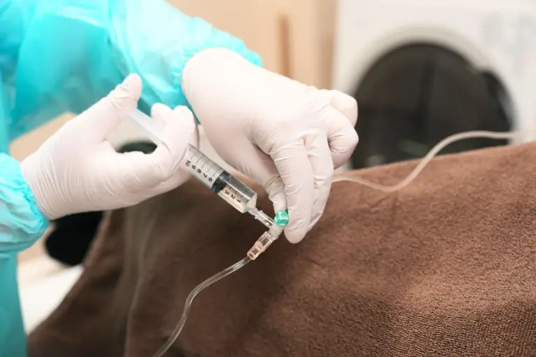肢に留置針を入れ、点滴を開始します。